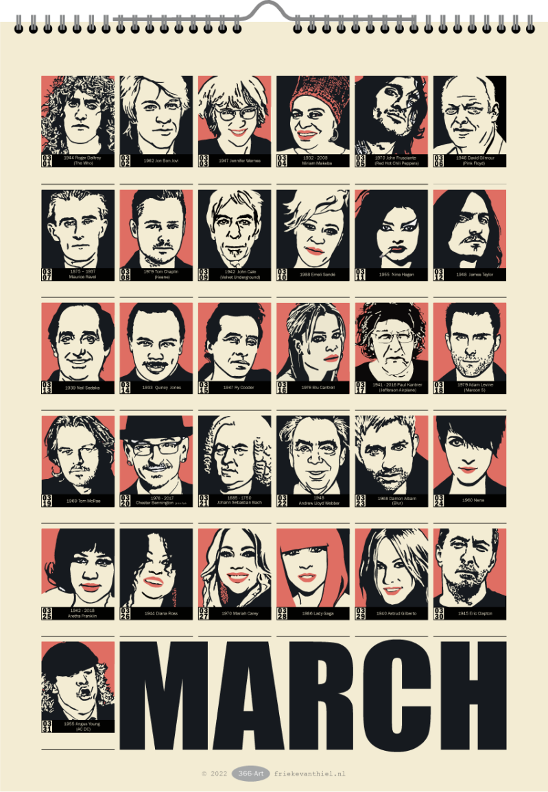 His portrait above and the musical reference work / birthday calendar