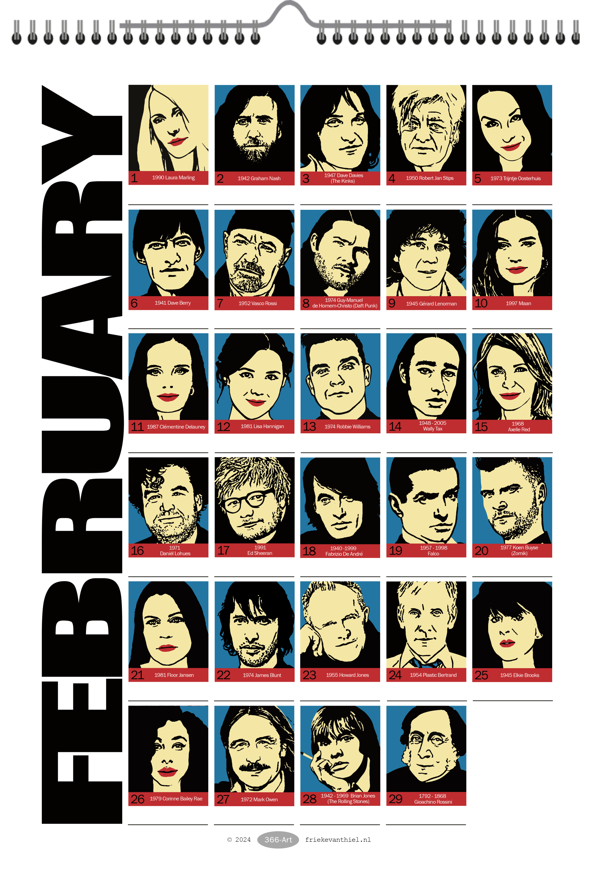 The edit above and the birthday calendar featuring 366 European musicians were created by me, Frieke.